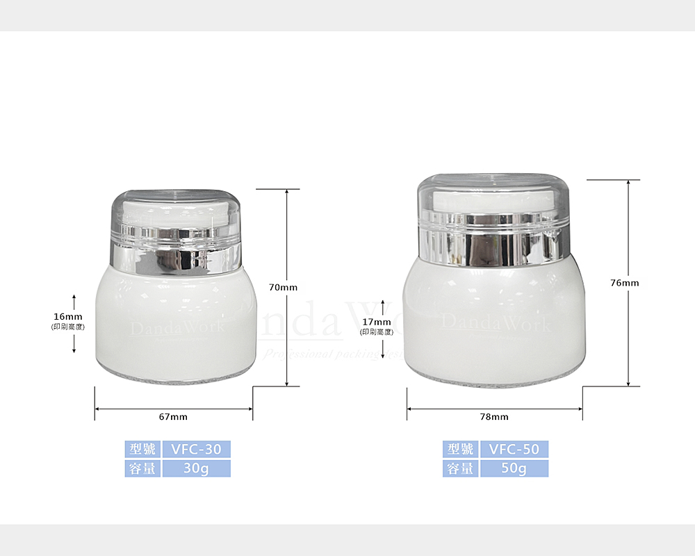 | VFC-30 | 30g | 67*70 | PETG塑膠瓶身+壓頭+透明AS上蓋 |